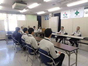 4月3日(月)本社にて平成29年度新入社員入社式を執り行いました。本社電気2名 配電1名 空調管1名 県央支社1名の計5名が入社しました。入社式では社長挨拶の後、新入社員代表の決意表明を行いました。